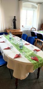 Aus Impulsen wie diesen entstand ein Projekt, an dem Viele sich beteiligten. Von Anfang an war die Diözese Rottenburg-Stuttgart mit im Boot, die bis heute unsere Arbeit hier großzügig fördert. Die örtliche Pfarrgemeinde, die ihren langjährigen Pfarrer Josef Weiger noch in lebendiger Erinnerung hatte, stimmte einer gemeinsamen Nutzung als Gedenkstätte und als Pfarrheim zu. 1993 kam es zur Gründung des Freundeskreises Mooshausen e. V., der jahrzehntelang von unserer Jubilarin geleitet wurde, weswegen die Geburtstagsfeier, die der Freundeskreis Mooshausen für sie abhält, im Unterschied zu zahlreichen anderen Feiern und Ehrungen, wohl zu Recht vor allem ihre Bedeutung für das Werk Guardinis und den „Geist“ dieses „alten Hauses“ ins Zentrum stellt.