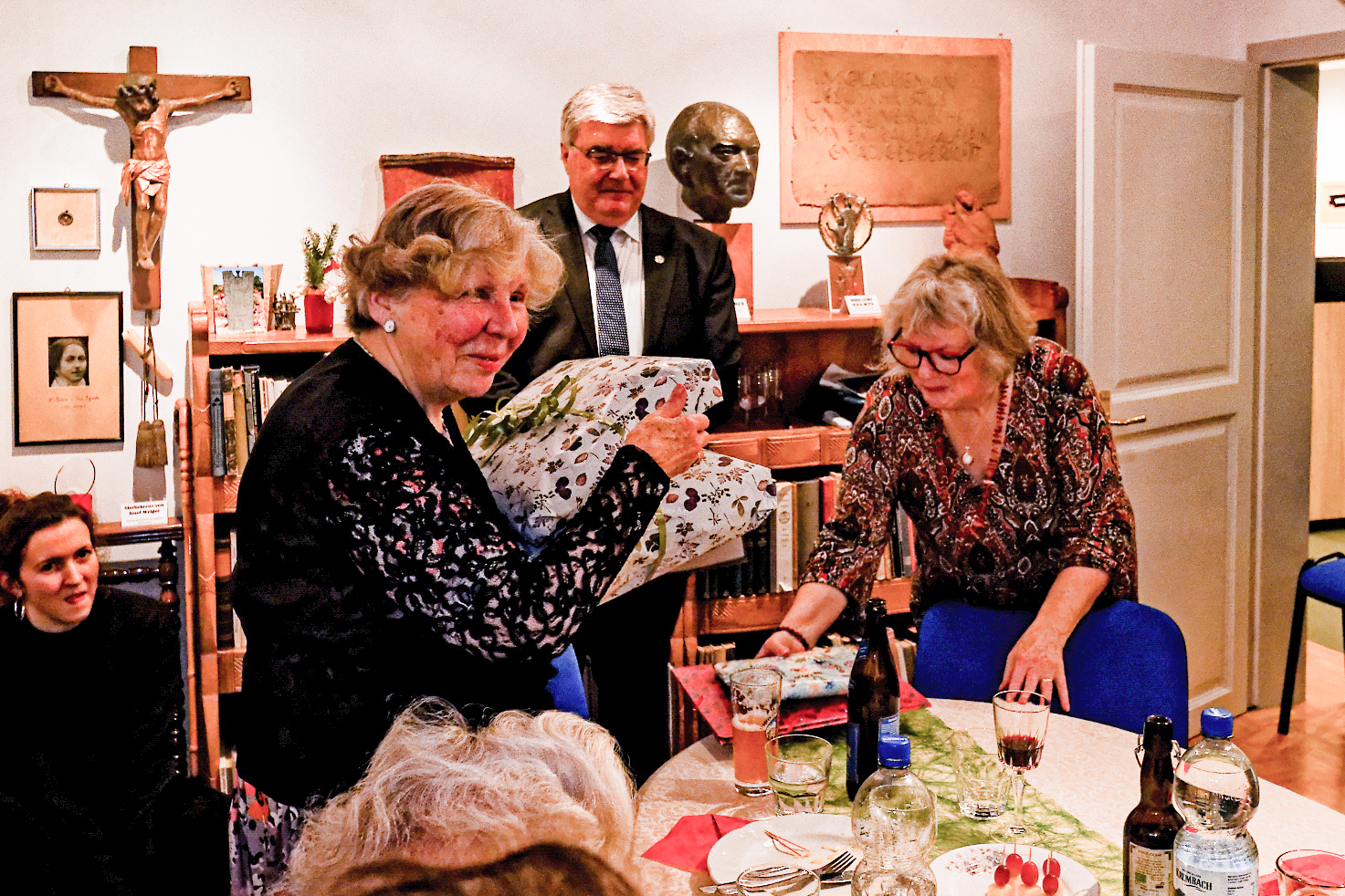 Zu Ehren von Hanna-Barbara Gerl-Falkovitz gab der Freundeskreis Mooshausen e.V. einen Empfang am 29.11.2025 abends im „Blauen Salon“ des Alten Pfarrhauses von Mooshausen: